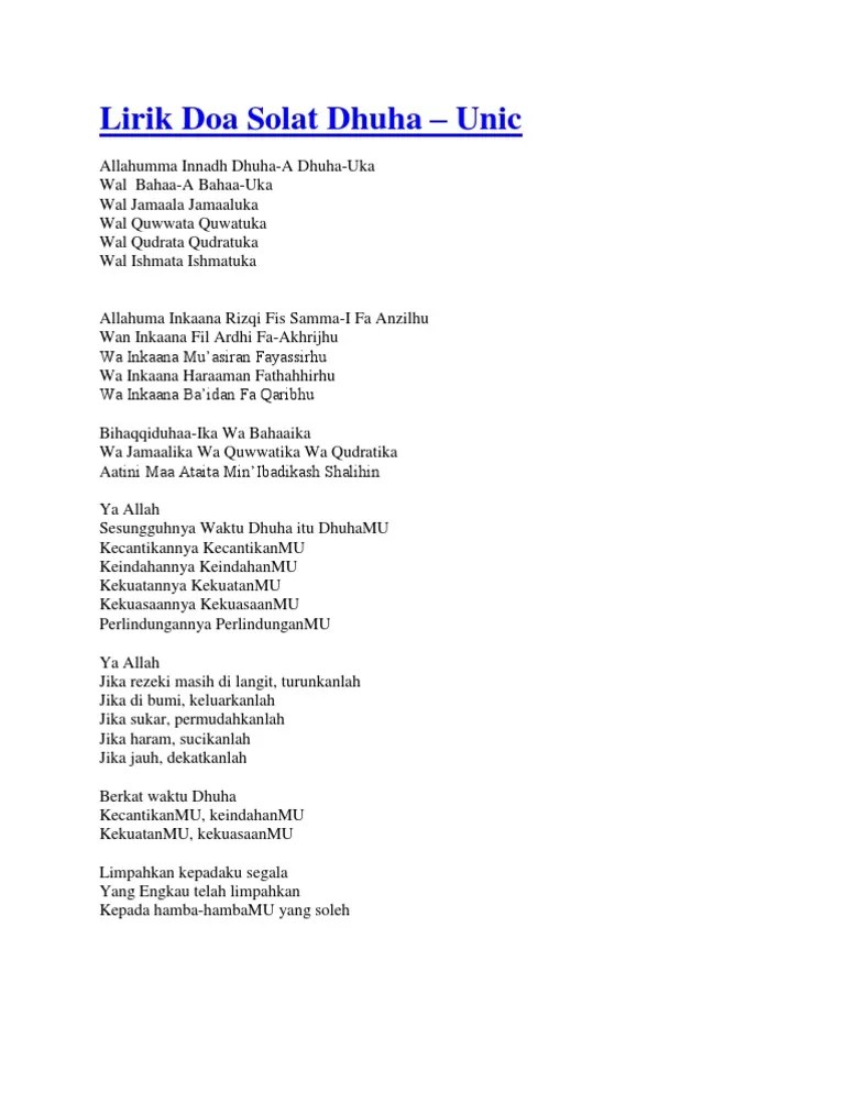 Download lagu doa setelah sholat dhuha sheetlasopa. Berikut lirik lagu doa dhuha ~ unic ~: Beautiful dua duha duha prayer dua to increase rezq doa dhuha unic youtube. Doa solat dhuha lyric unic youtube. Lirik doa solat dhuha d49orke00849.